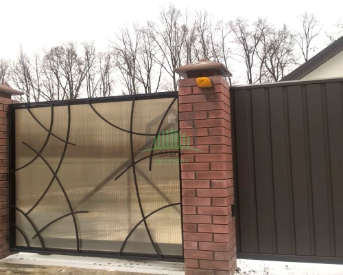 Откатные ворота, кирпич для столбов и все сопутствующие материалы для ленточного фундамента доставляются отдельно.